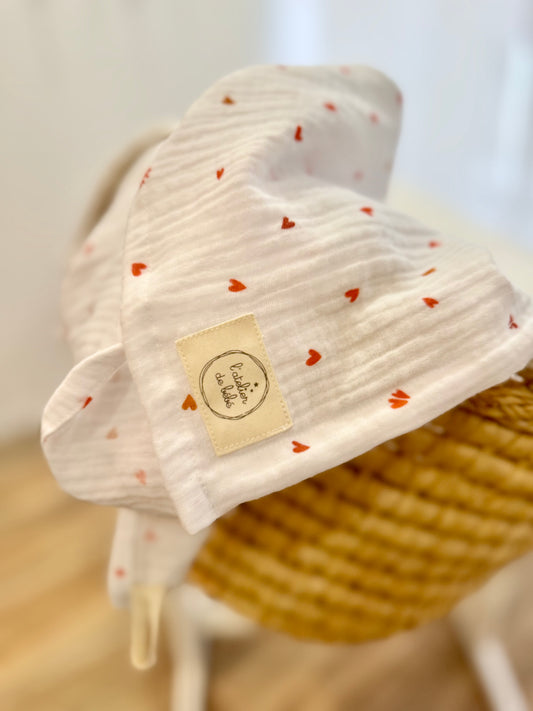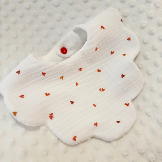 Bavoir Trio gaze de coton petit coeur blanc et écru pois or