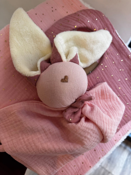 Doudou Lapin rose et or -Personnalisable