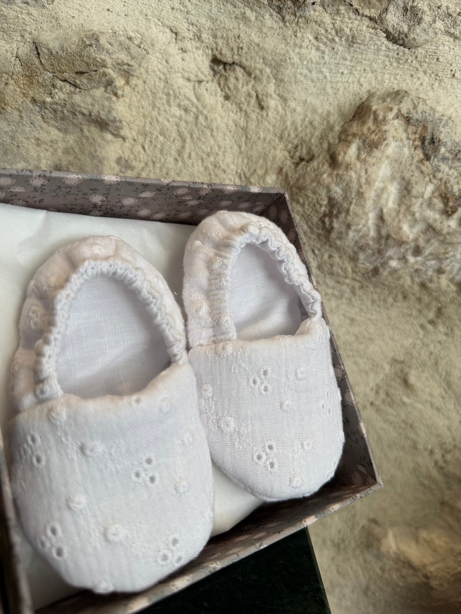 Leur tissu délicat protège les petits pieds tout en assurant une agréable sensation de douceur. Le motif imprimé de petites lavandes ajoute une touche charmante et élégante, faisant de ces chaussons un cadeau parfait qui séduira à coup sûr. Idéal pour garder les pieds de bébé au chaud avec style.