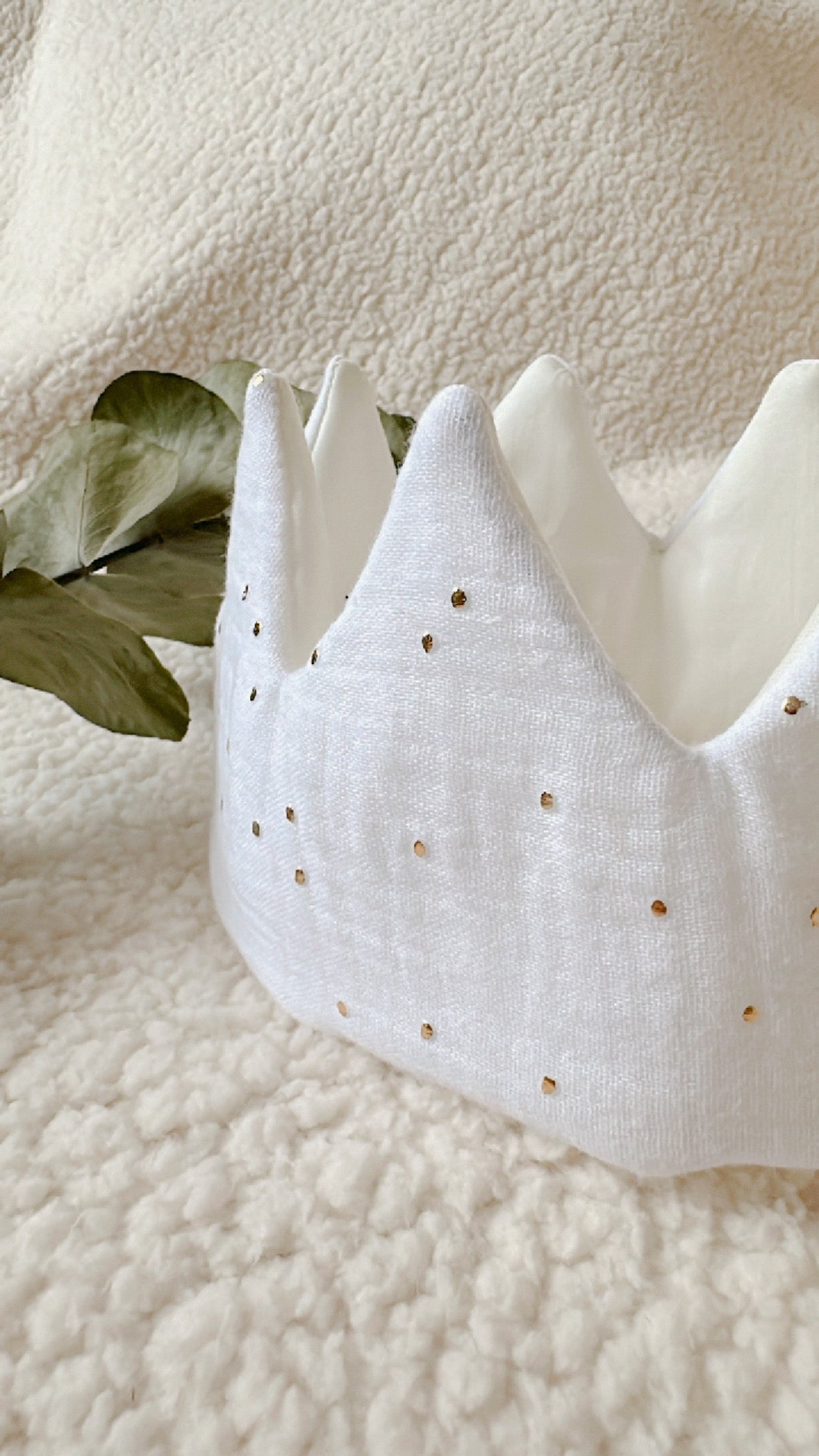 La Couronne en coton 0 à 12 ans est l'accessoire parfait pour l'épiphanie, les anniversaires, les baby showers ou les déguisements. Conçue en coton doux et écologique, elle est également durable et ajustable pour un confort optimal. Ajoutez une touche spéciale à toutes vos célébrations avec cette couronne unique en son genre.
