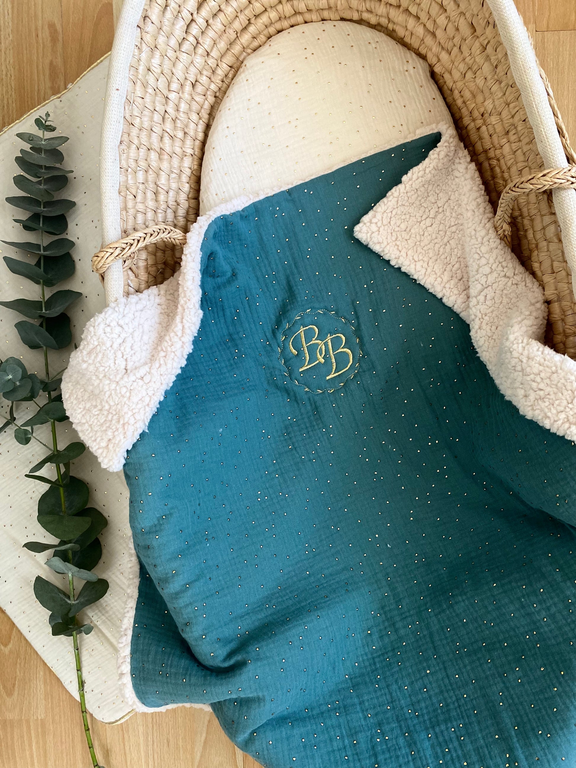 cette belle couverture peut aussi être brodé BB comme sur la photo .
