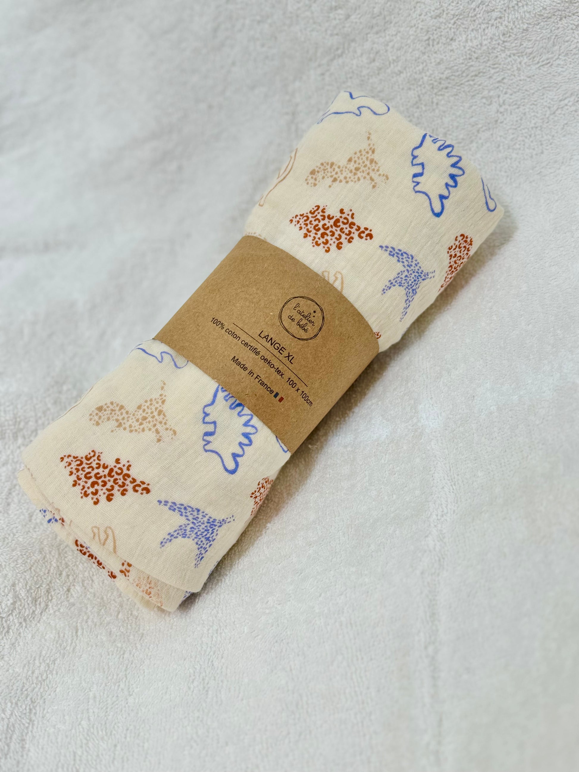 Le lange XL est facile a transporter , il sert de drap ,de blouse d'allaitement ou de petit plaide d'été