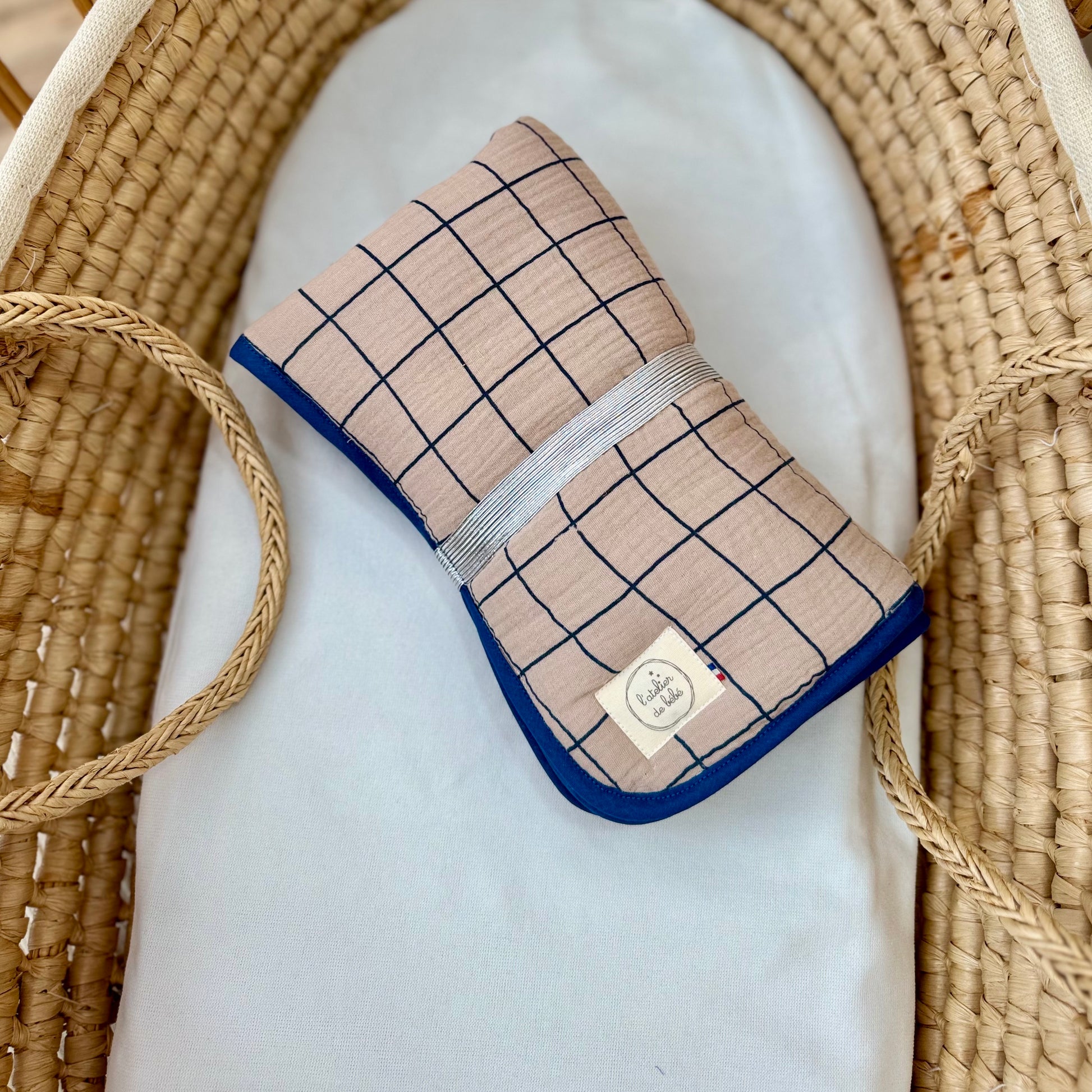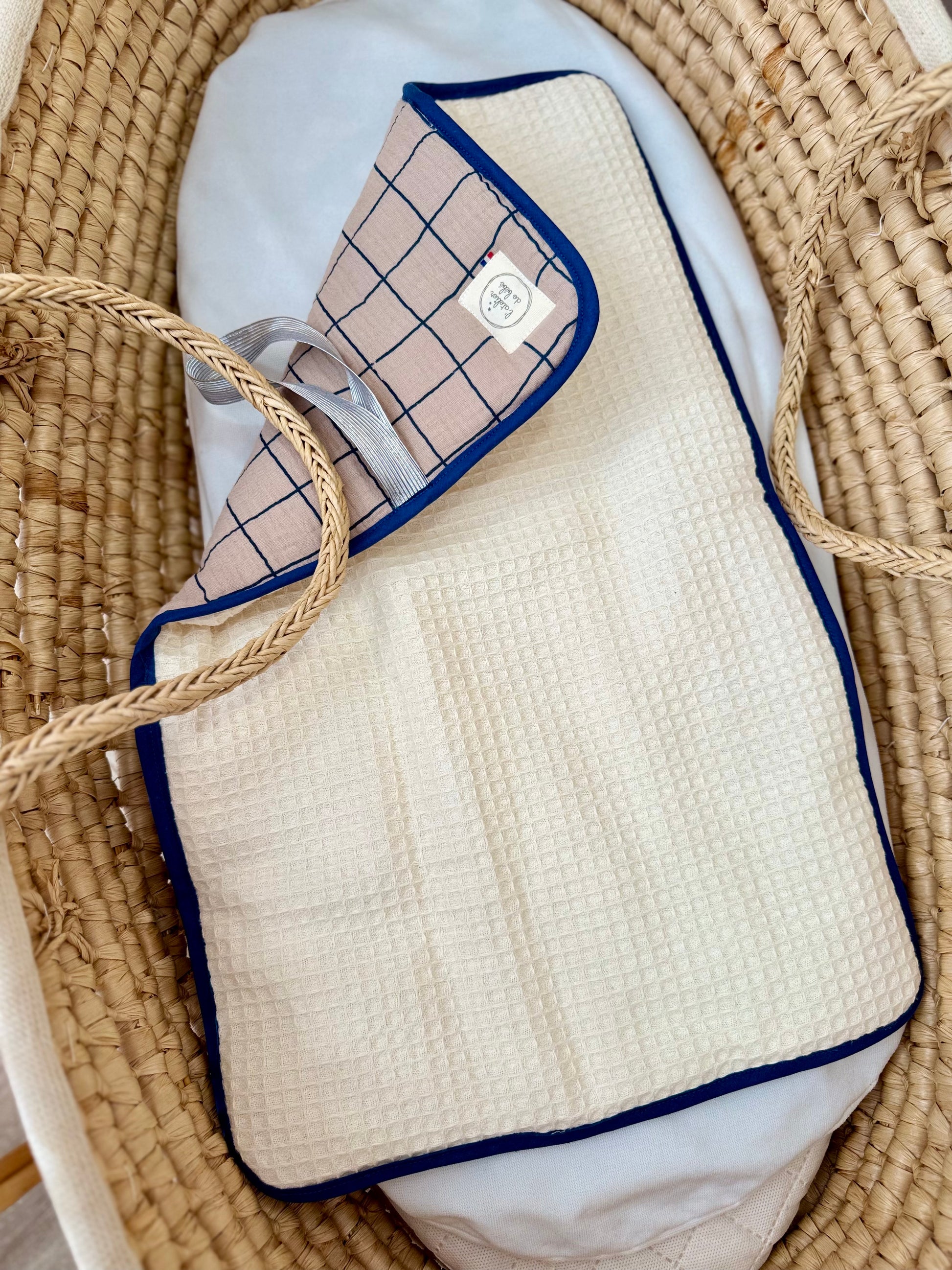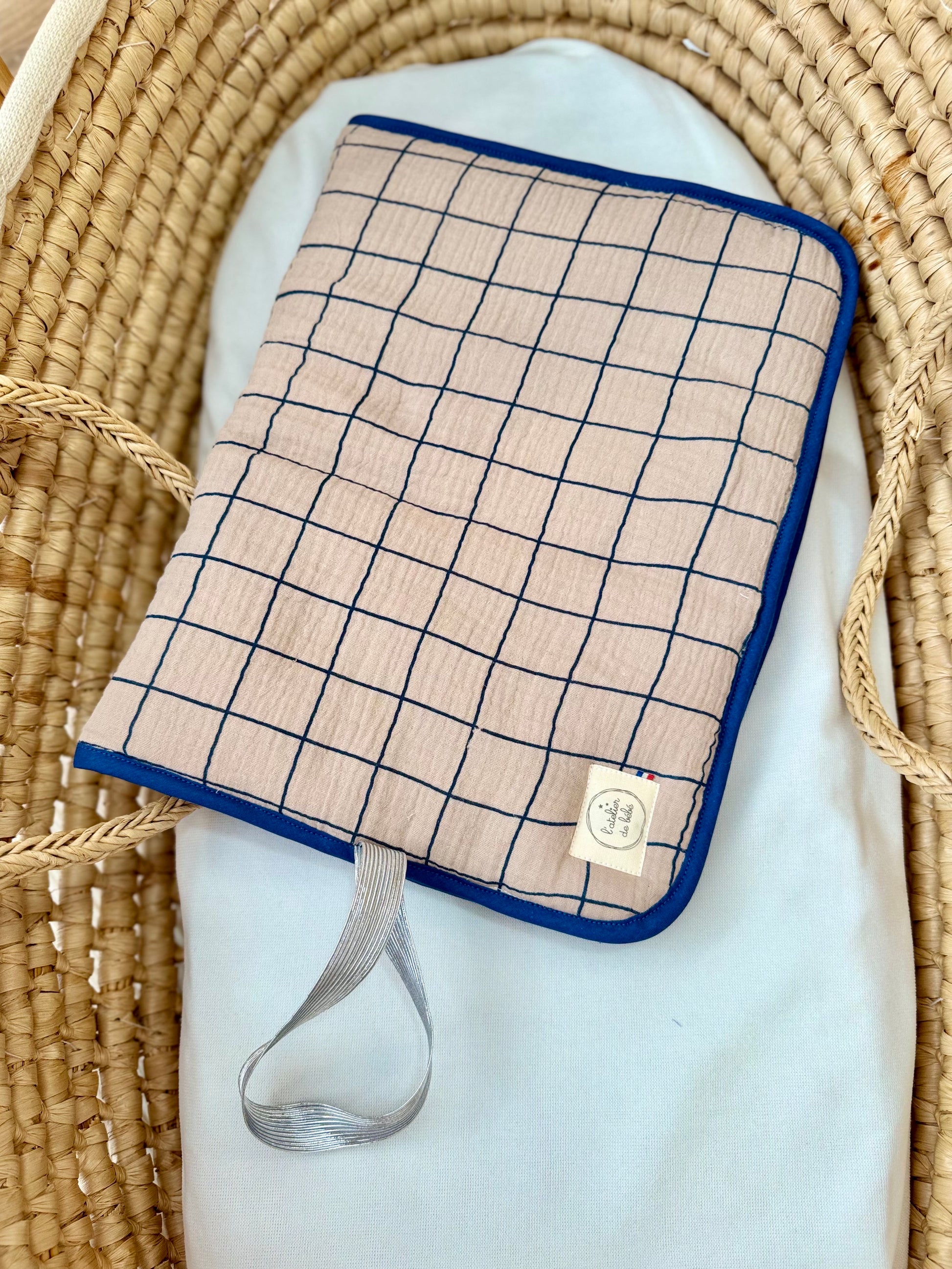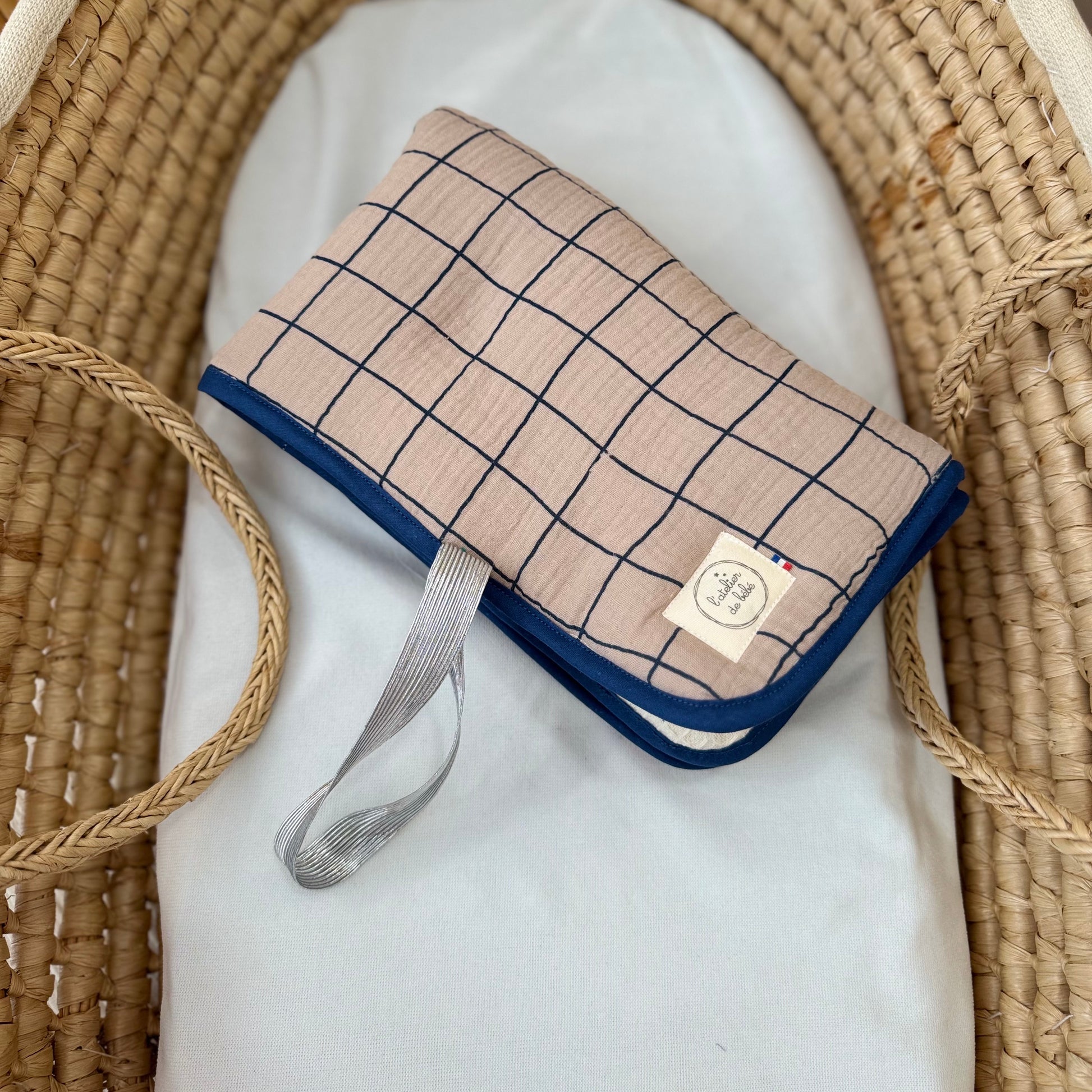 Le tapis à langer nomade carreaux indigo est l’allié parfait pour changer bébé partout, en toute simplicité. Molletonné et confortable, il offre un espace doux et sécurisé pour votre enfant. Léger, pliable et facile à transporter, il vous accompagne partout sans encombre. Ne laissez plus le confort de bébé au hasard, choisissez la praticité et la douceur à chaque sortie.