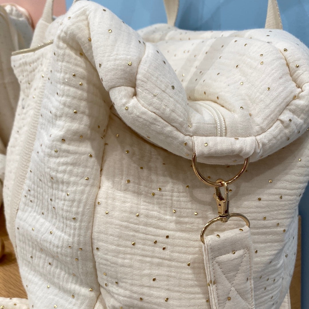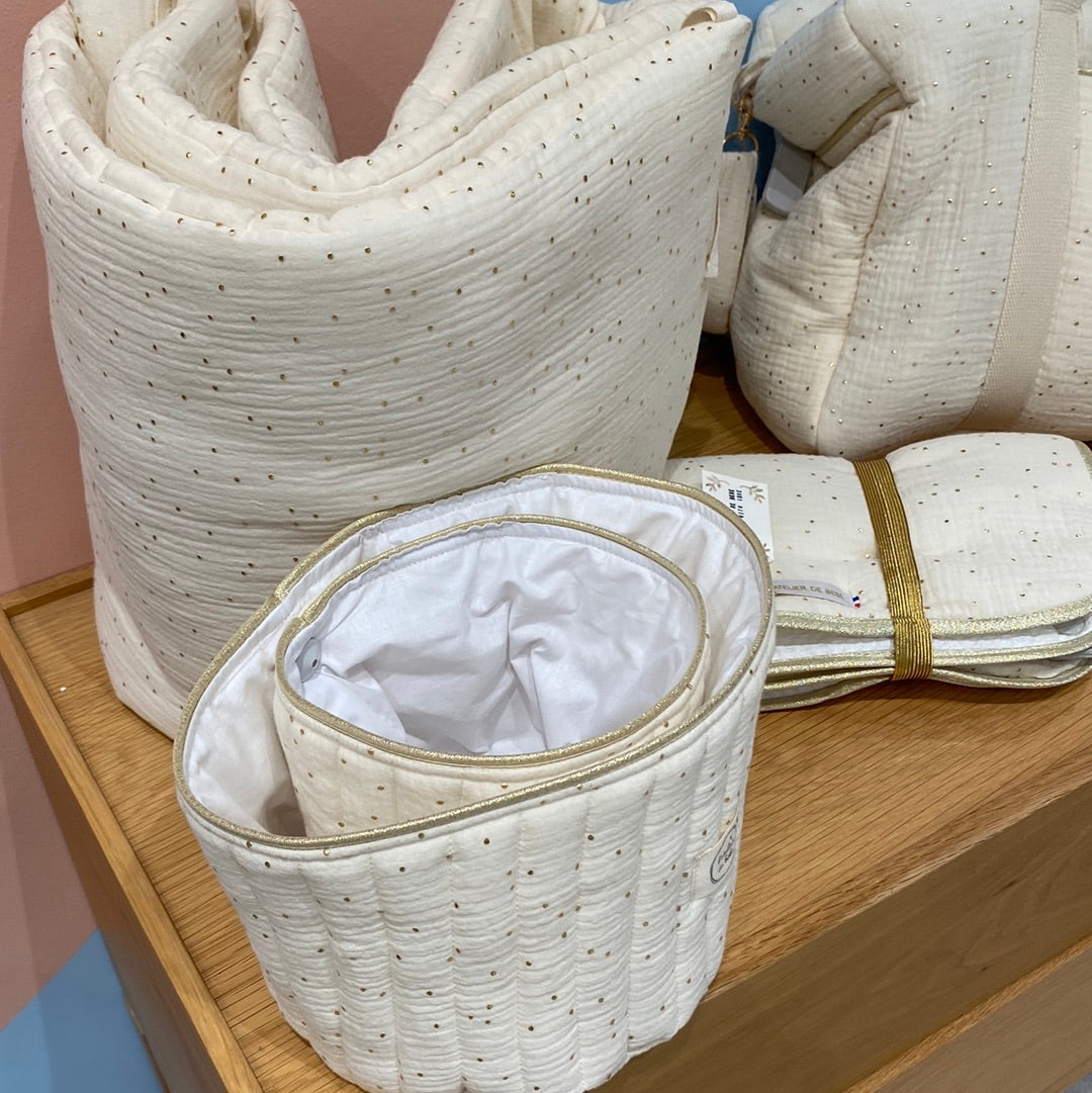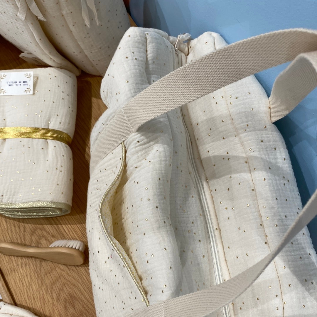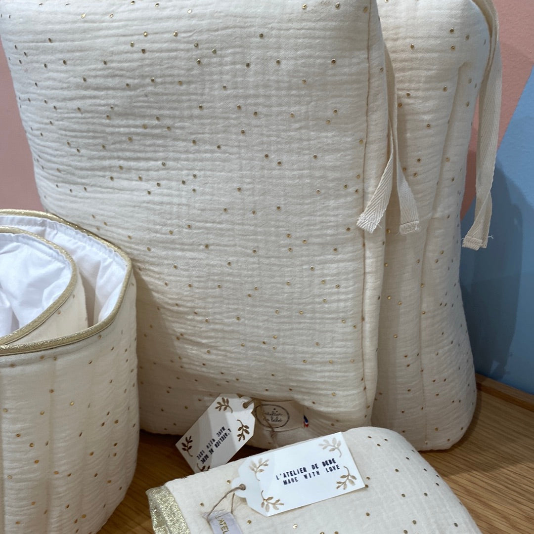 Le trousseau naissance écru pois or est un produit unique et adorable, certifié Oekotex et fait main, pour le plus grand luxe et confort de votre bébé. Fabriqué en coton doux et délicat, ce trousseau est un must-have pour votre petit trésor.