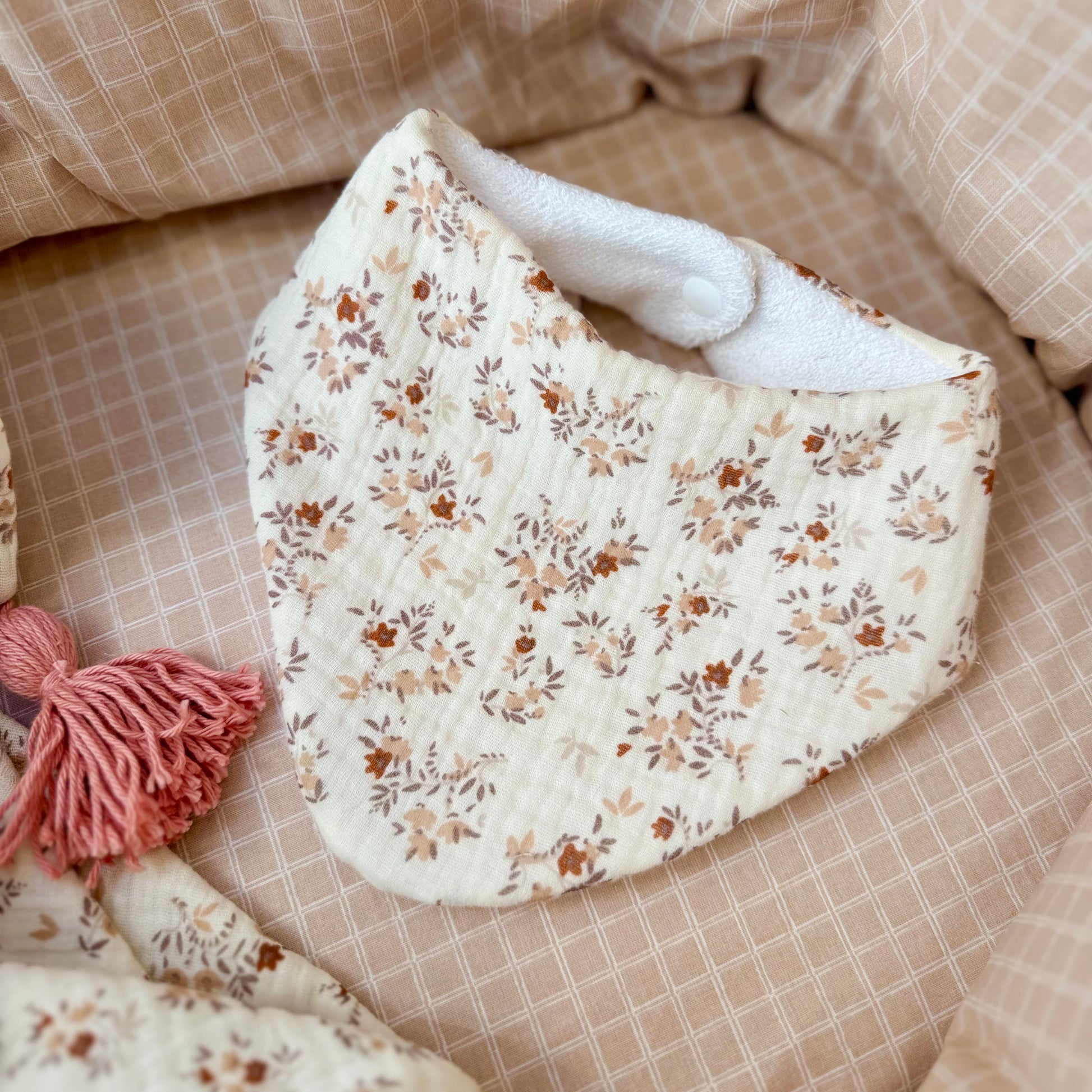 Un joli bavoir bandan tout doux pour aller avec les petites tenues de bébé , idéal pour finir un look et garder les vetements secs