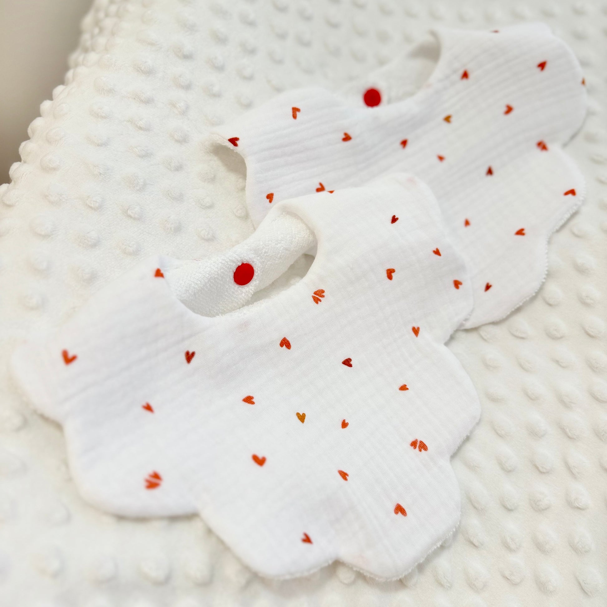 Ce Bavoir fleur petit coeur rouge ajoutera une touche de charme à une robe ou un t-shirt blanc. La colerette est idéale pour protéger les enfants contre les taches et faciliter le nettoyage. Avec son motif de coeur rouge, il ajoutera une touche de tendresse à l'ensemble.