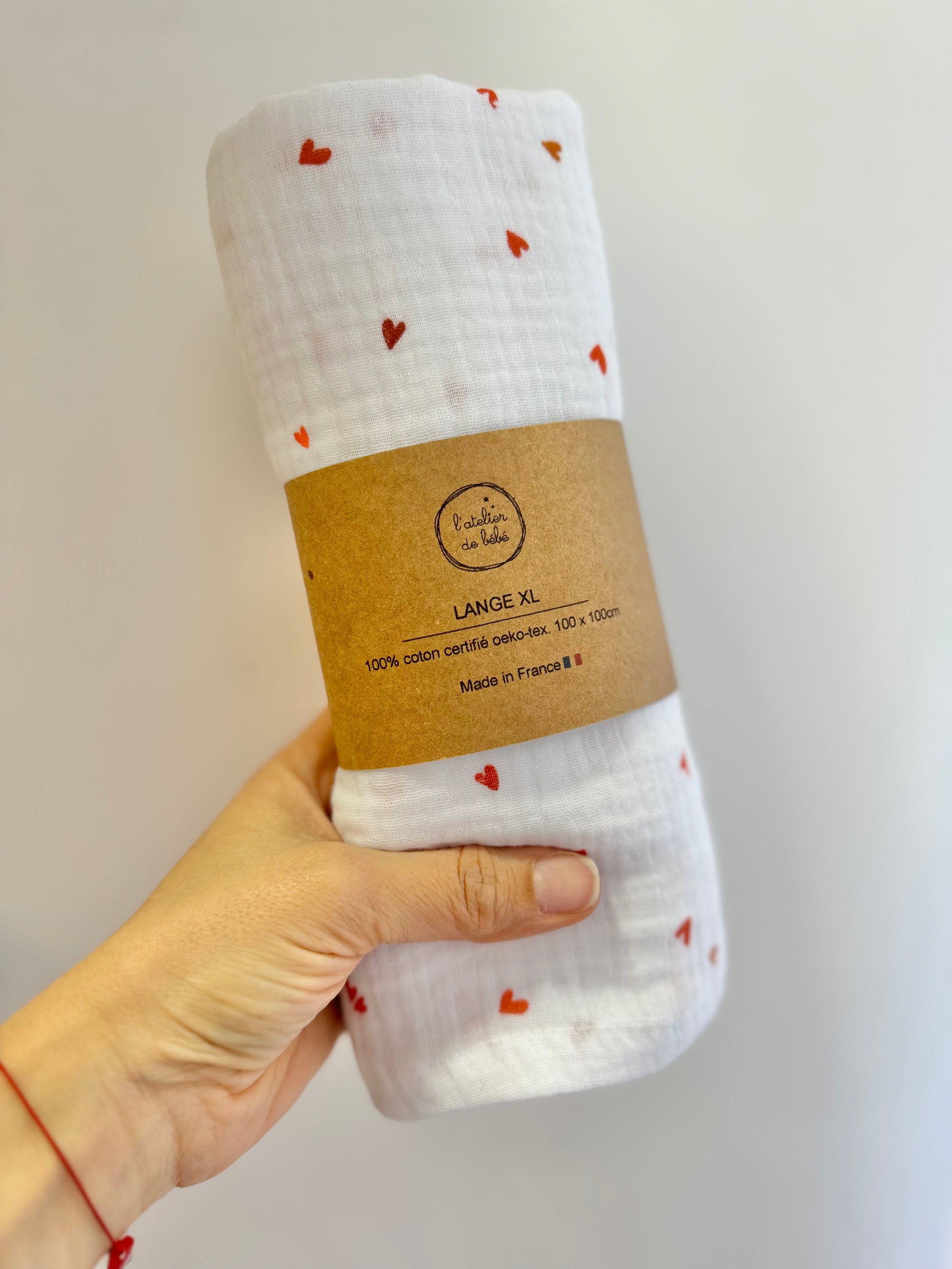 Le lange XL est facile a transporter , il sert de drap ,de blouse d'allaitement ou de petit plaide d'été