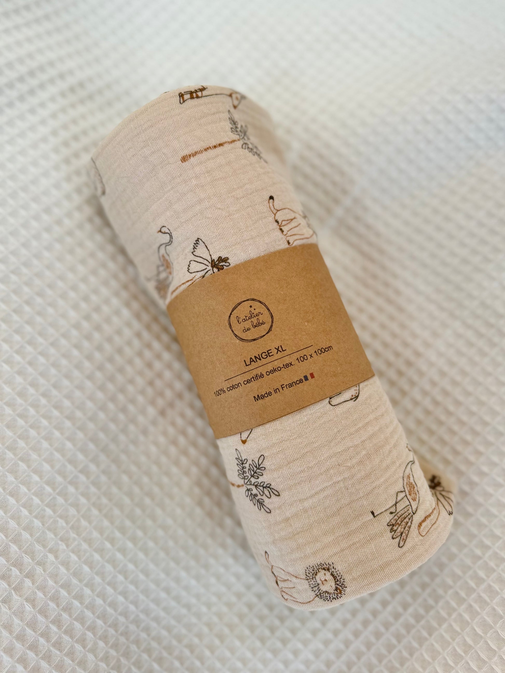 Le lange XL est facile a transporter , il sert de drap ,de blouse d'allaitement ou de petit plaide d'été