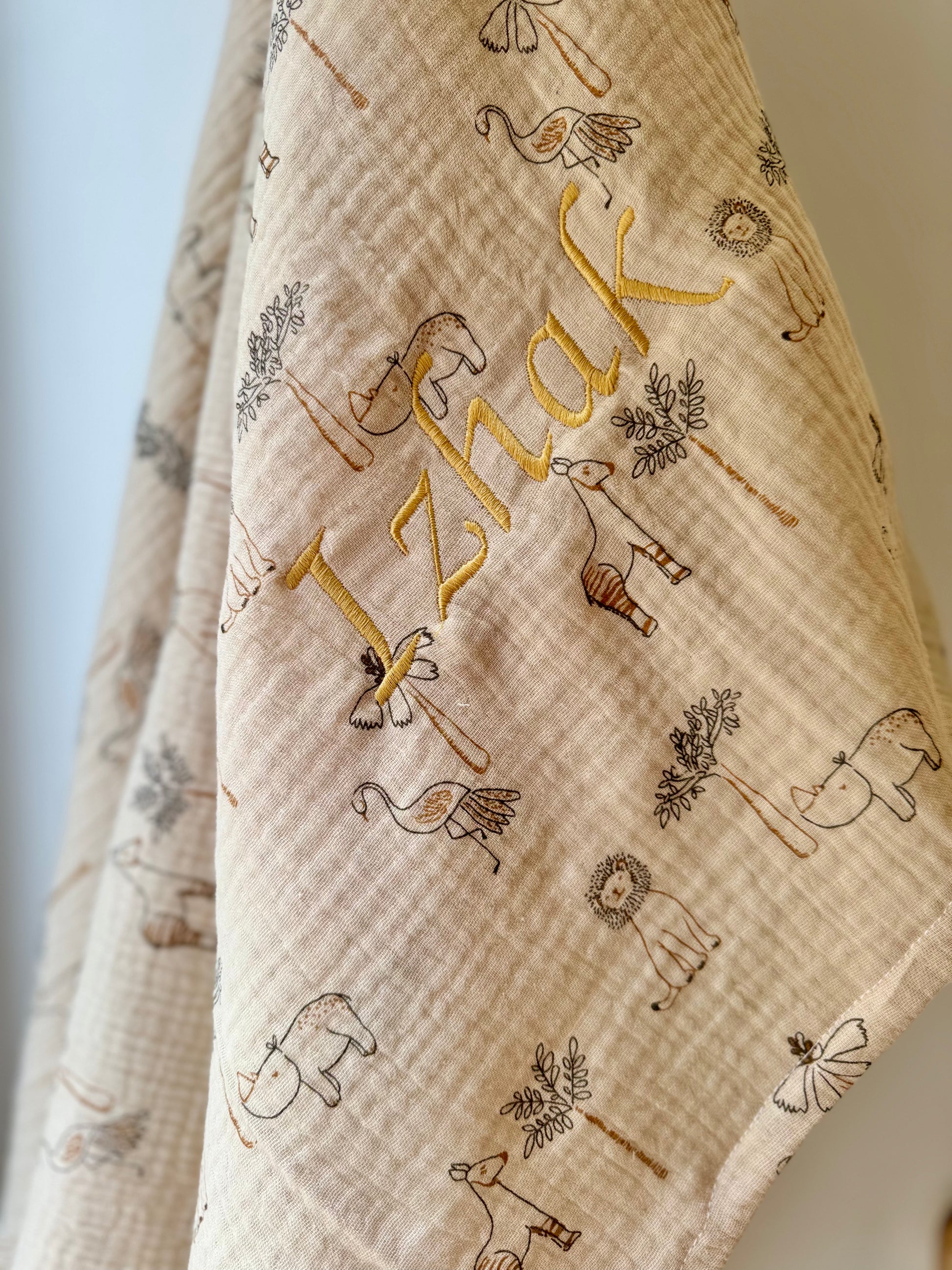Un maxi lange dès la naissance de bébé. Son grand format 100 x 100 cm environ permet de multiples utilisations en salle d'accouchement , a la maison comme en balade.