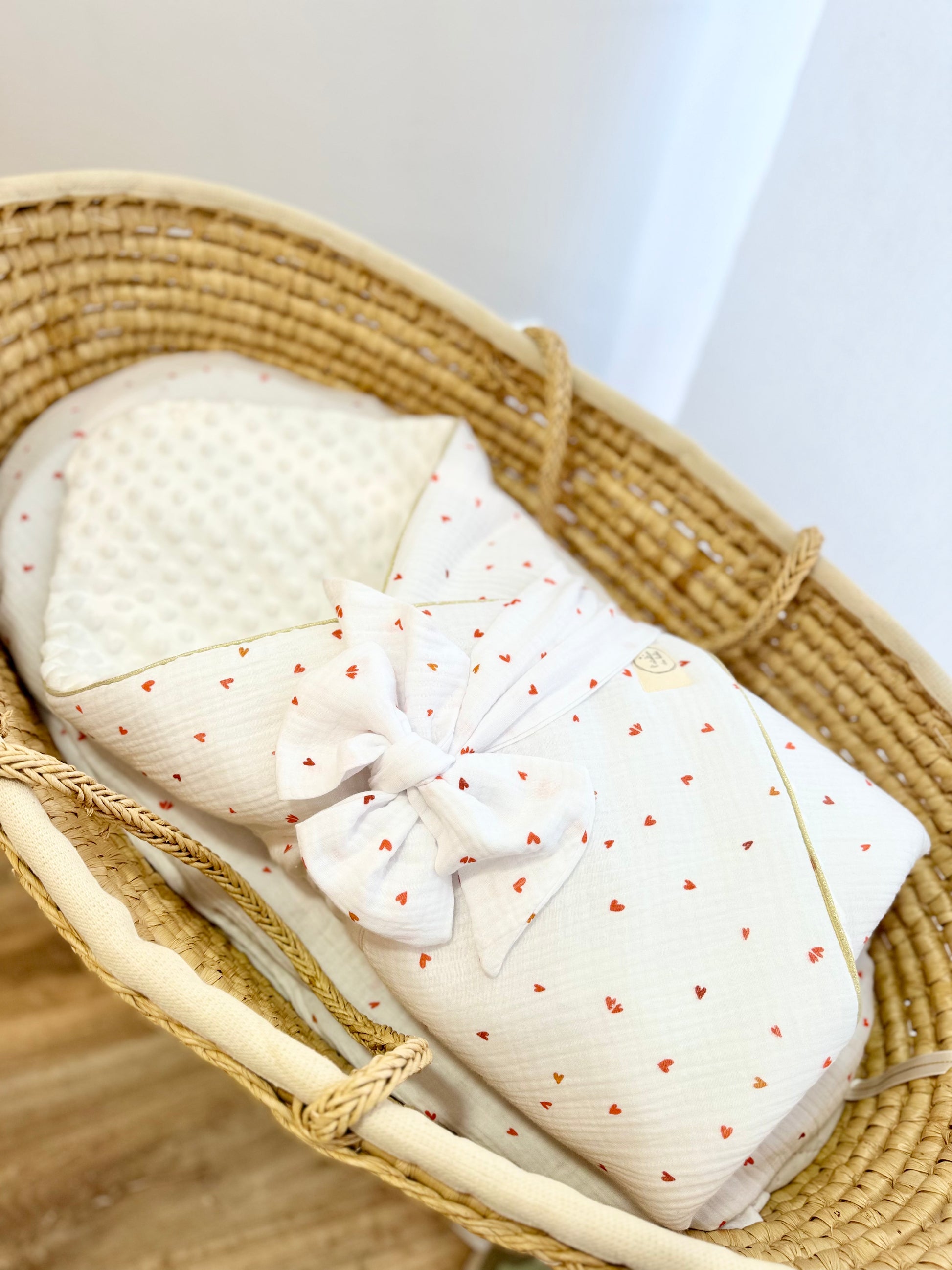 Un essentiel dans la vie de bébé dès la naissance. Le nid d'ange d'emmaillotage accompli sa fonction de nid douillet pour bébé, il l'aide à garder sa chaleur dès la sortie du ventre de maman. Sa fonction "emmaillotage" est rassurante et très pratiquée dans les maternités actuellement. le ruban permet de serrer ou de desserer la nid d'ange a souhait .