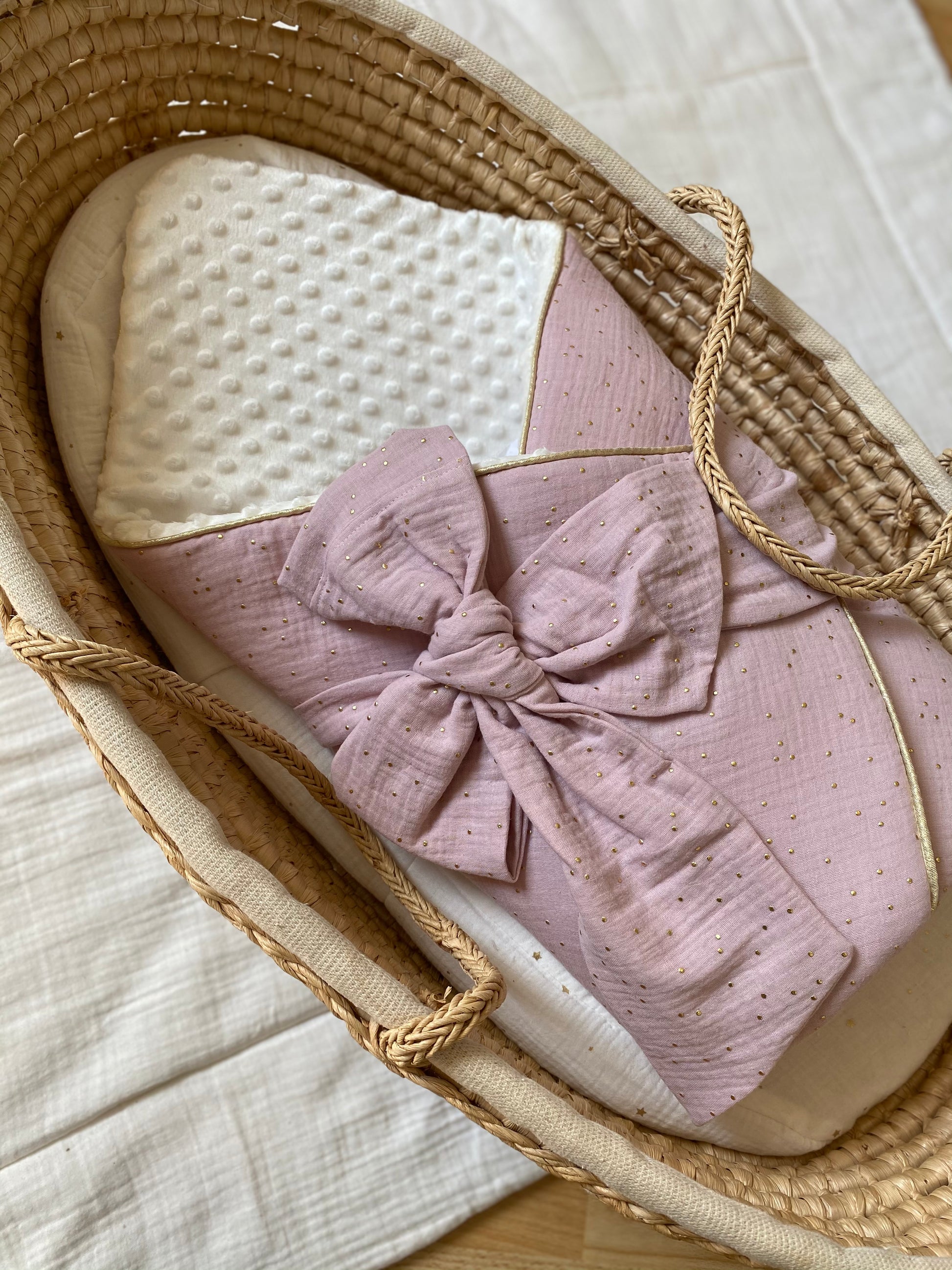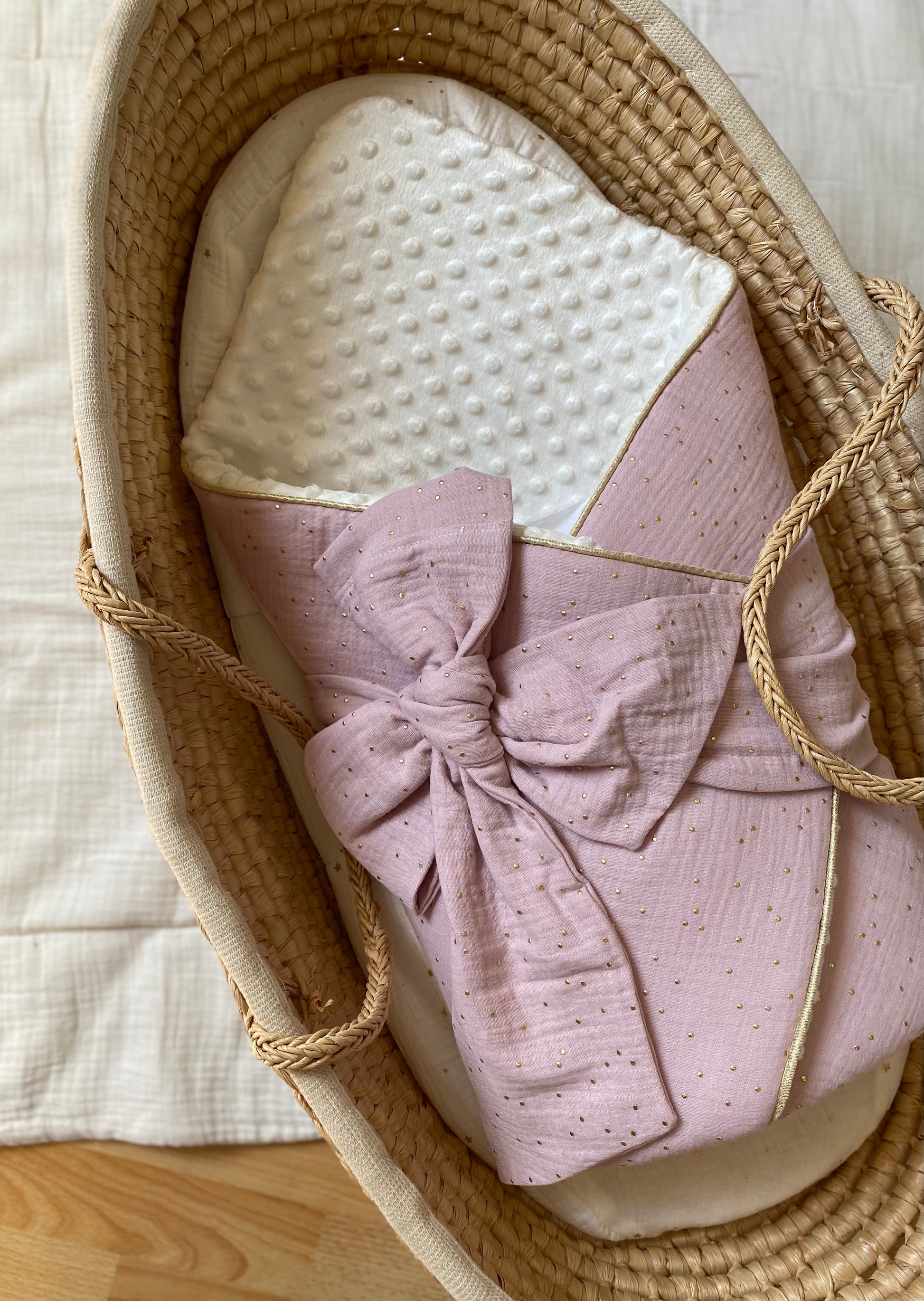 Un essentiel dans la vie de bébé dès la naissance. Le nid d'ange d'emmaillotage accompli sa fonction de nid douillet pour bébé, il l'aide à garder sa chaleur dès la sortie du ventre de maman. Sa fonction "emmaillotage" est rassurante et très pratiquée dans les maternités actuellement. le ruban permet de serrer ou de desserer la nid d'ange a souhait .